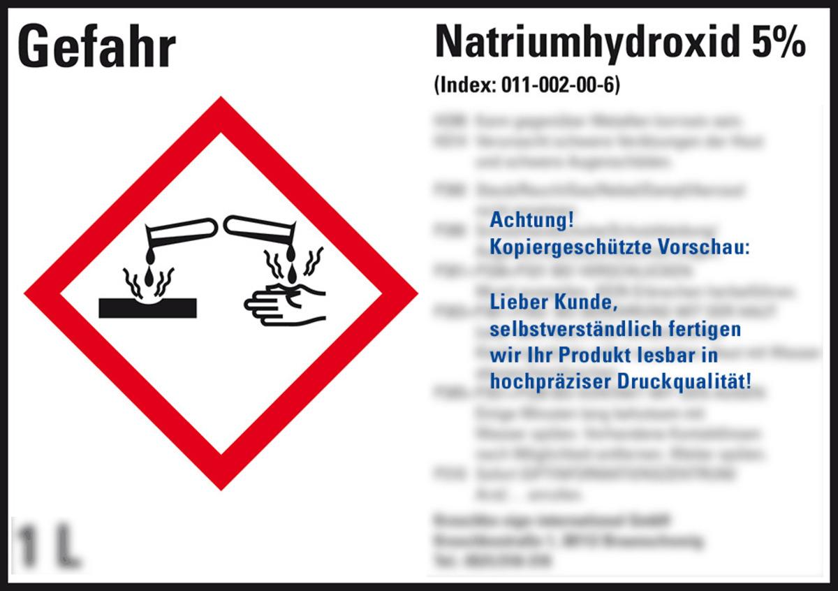 KSIGN Gefahrstoffetikett Text und Symbol nach Wunsch Natriumhydroxid 5 %
