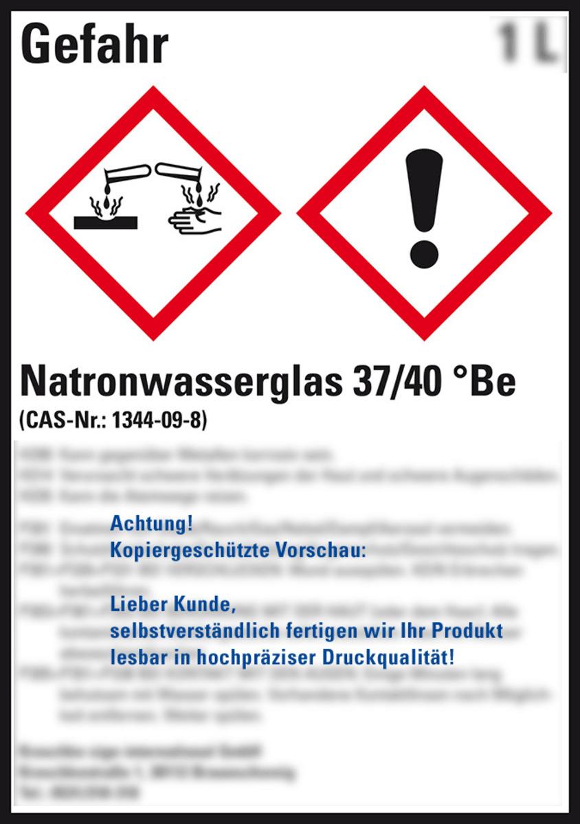 KSIGN Gefahrstoffetikett Text und Symbol nach Wunsch Natronwasserglas 37/40 °Be