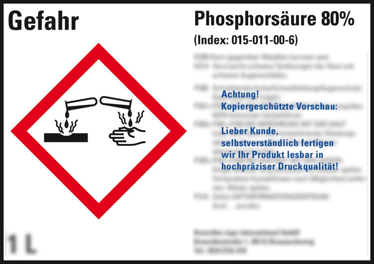 KSIGN Gefahrstoffetikett Text und Symbol nach Wunsch Phosphorsäure 80 %