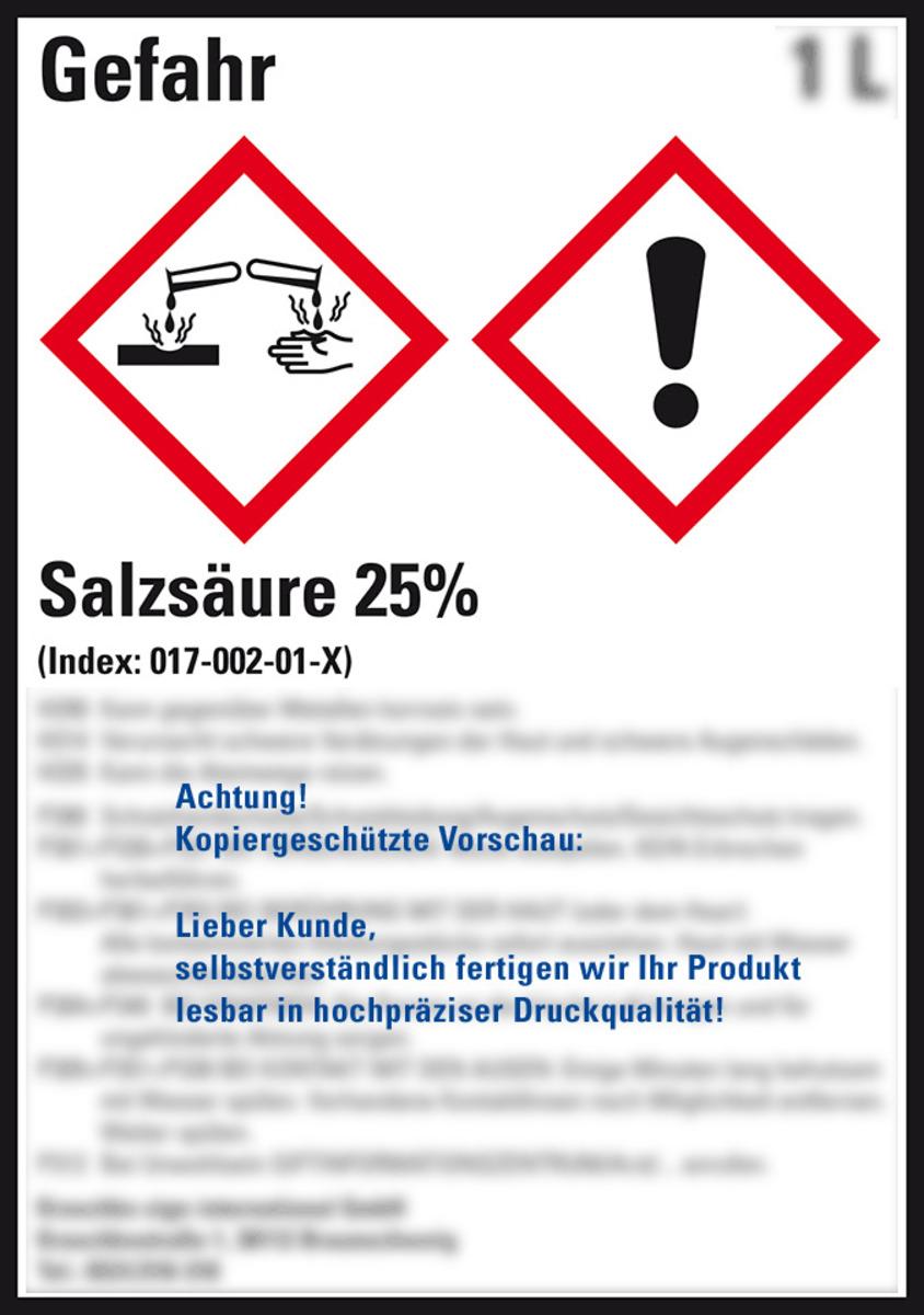 KSIGN Gefahrstoffetikett Text und Symbol nach Wunsch Salzsäure 25 %