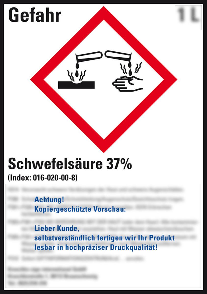 KSIGN Gefahrstoffetikett Text und Symbol nach Wunsch Schwefelsäure 37 %