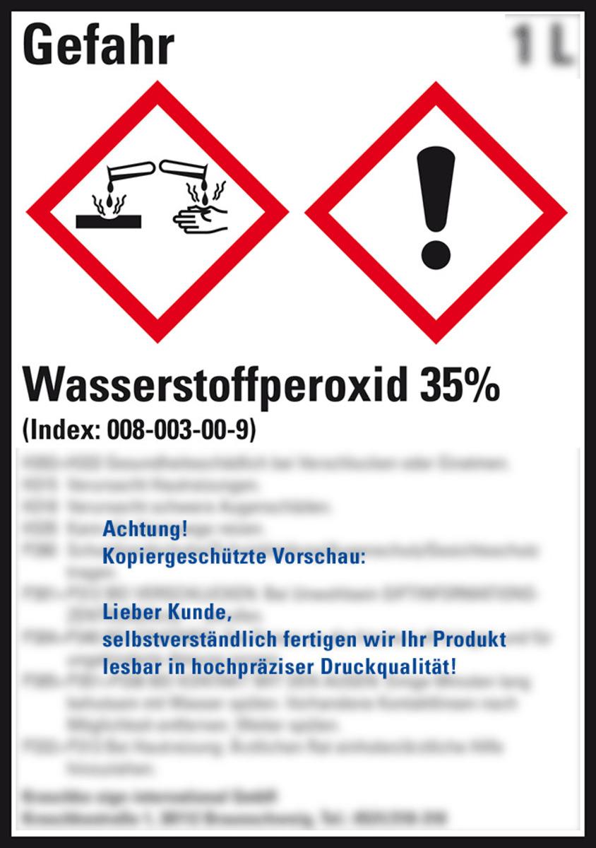 KSIGN Gefahrstoffetikett Text und Symbol nach Wunsch Wasserstoffperoxid 35 %