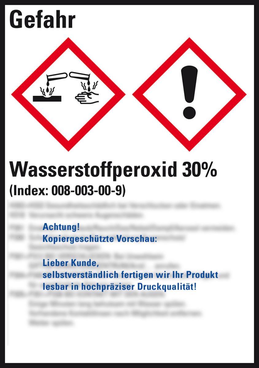 Auswahl: GHS-Etikett Wasserstoffperoxid 30%, gem.GefStoffV/GHS/CLP, Folie, 148x105mm, 4/Bogen