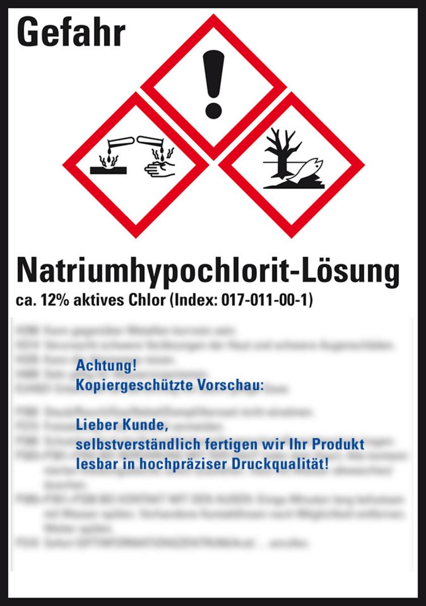 Auswahl: GHS-Etik.Natriumhypochlorit ca.12% akt.Chlor, GefStoffV/GHS/CLP, 148x105mm, 4/Bogen