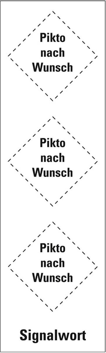 Auswahl: GHS-Grundetikett, 3 CLP/GHS-Piktos, Signalwort nach Wunsch., Polyesterfolie, 30x100mm, 6/Bogen
