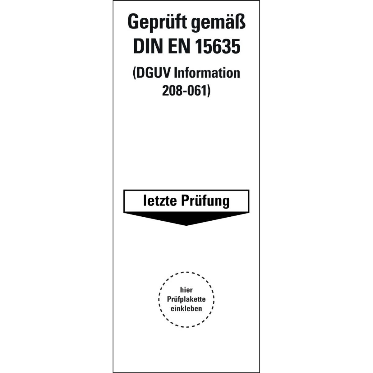 Grundetikett für Prüfungen gemäß DIN EN 15635, zum Aufkleben von Prüfplaketten
