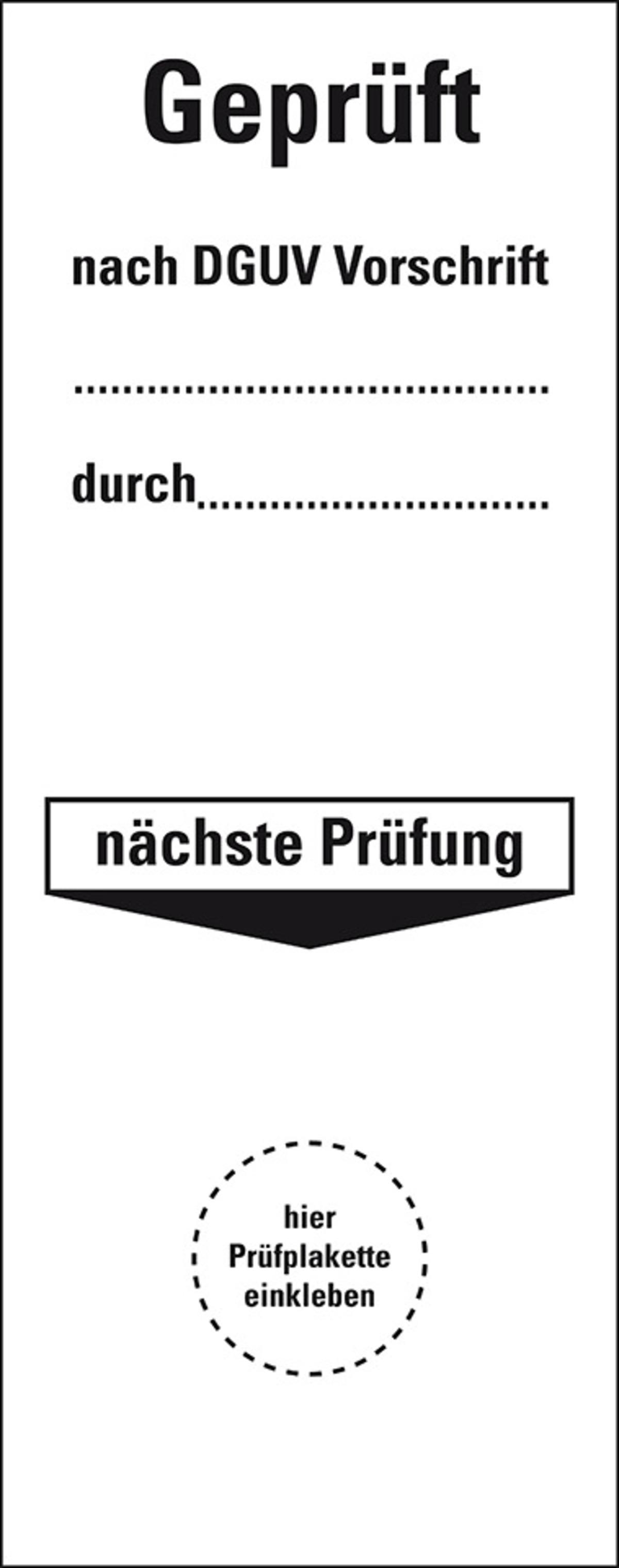 Auswahl: Grundetikett Gepr.n.DGUV Vorschrift durch...NP, Cellulose-Folie, 40x100mm, 5/Bogen