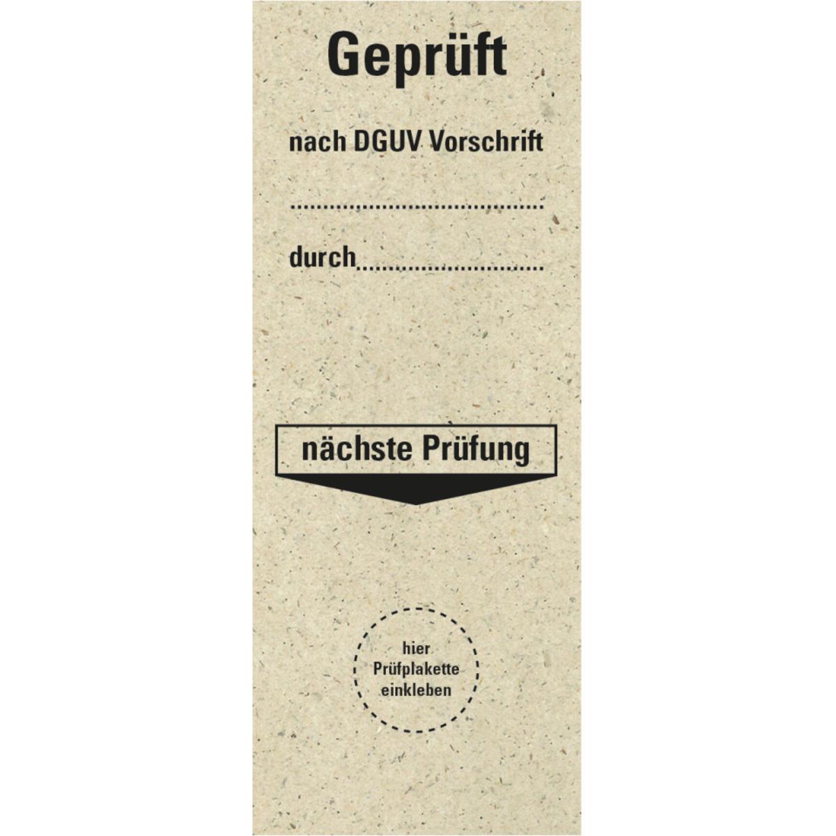 Auswahl: Grundetikett Gepr.n.DGUV Vor.durch..NP, Primärfaser-Graspapier, 40x100mm, 5/Bogen