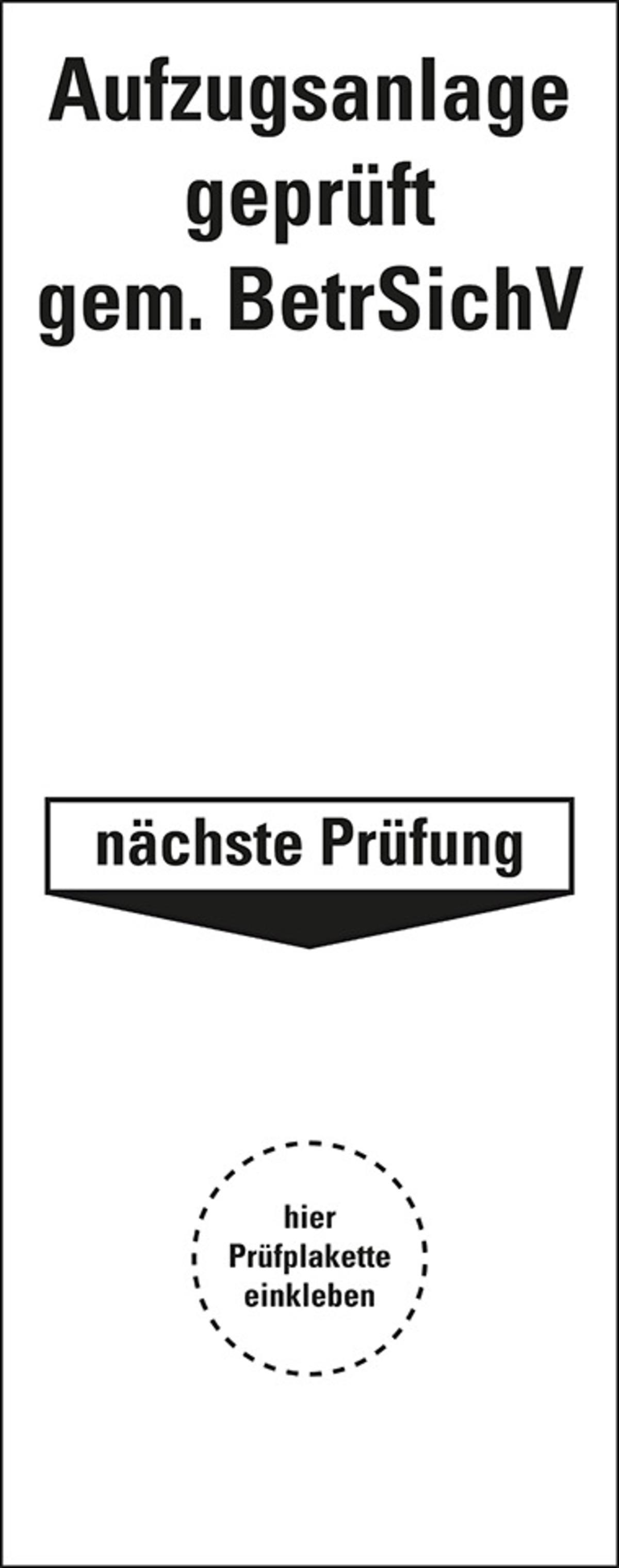 Grundetikett Aufzugsanlage zur schnellen Sichtung der nächsten Prüfung