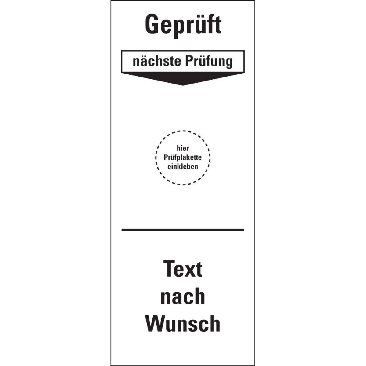 Auswahl: Grundetikett Geprüft nä.Prüfung, Text nach Wunsch, Folie, ablösbar, 40x100mm, 5/Bogen