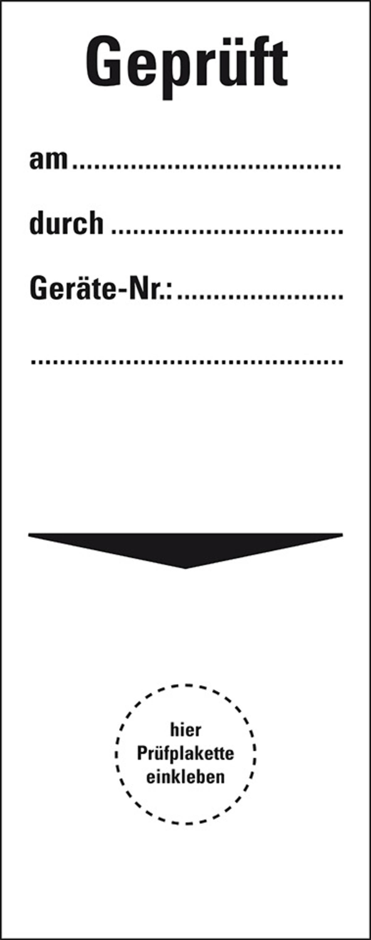Auswahl: Grundetikett Geprüft am...durch...Geräte-Nr., Folie, selbstkl., 40x100mm, 5/BOG