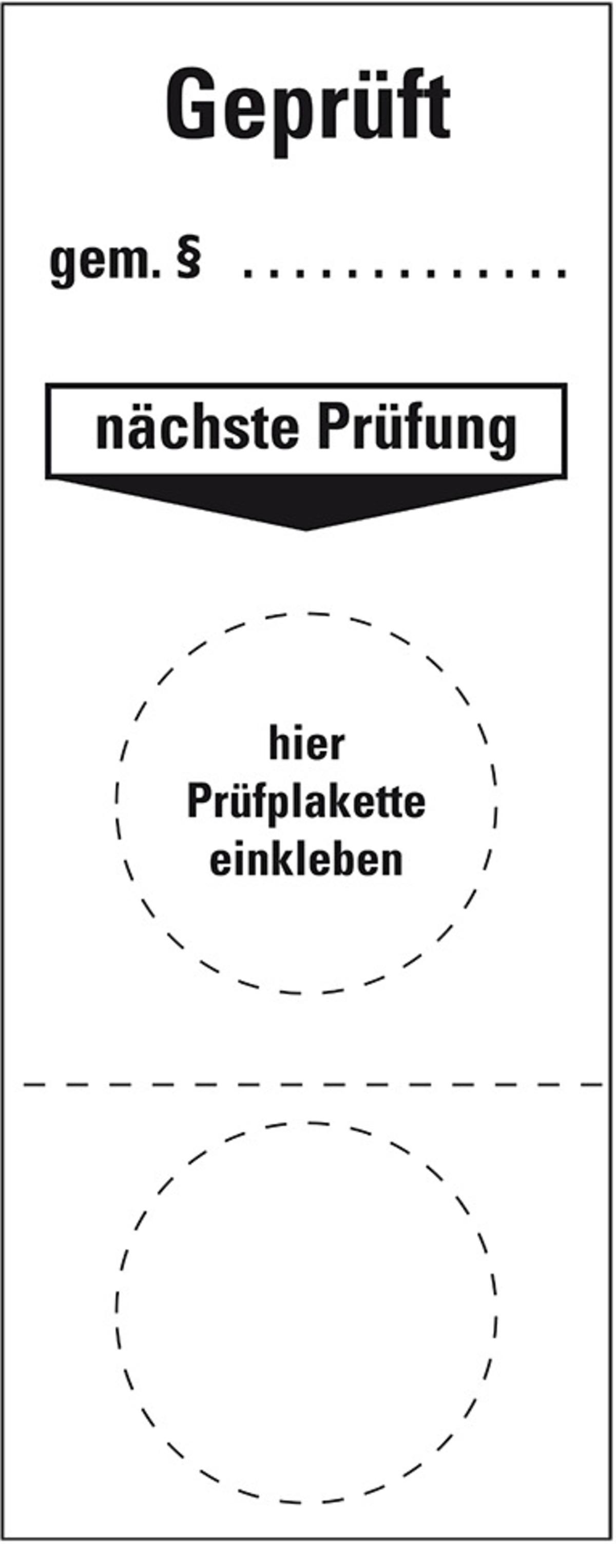 Auswahl: Grundetikett Geprüft, gem., nächste Prüf., inkl.Ø25mm Prüfi, 40x100mm, 5/Bogen
