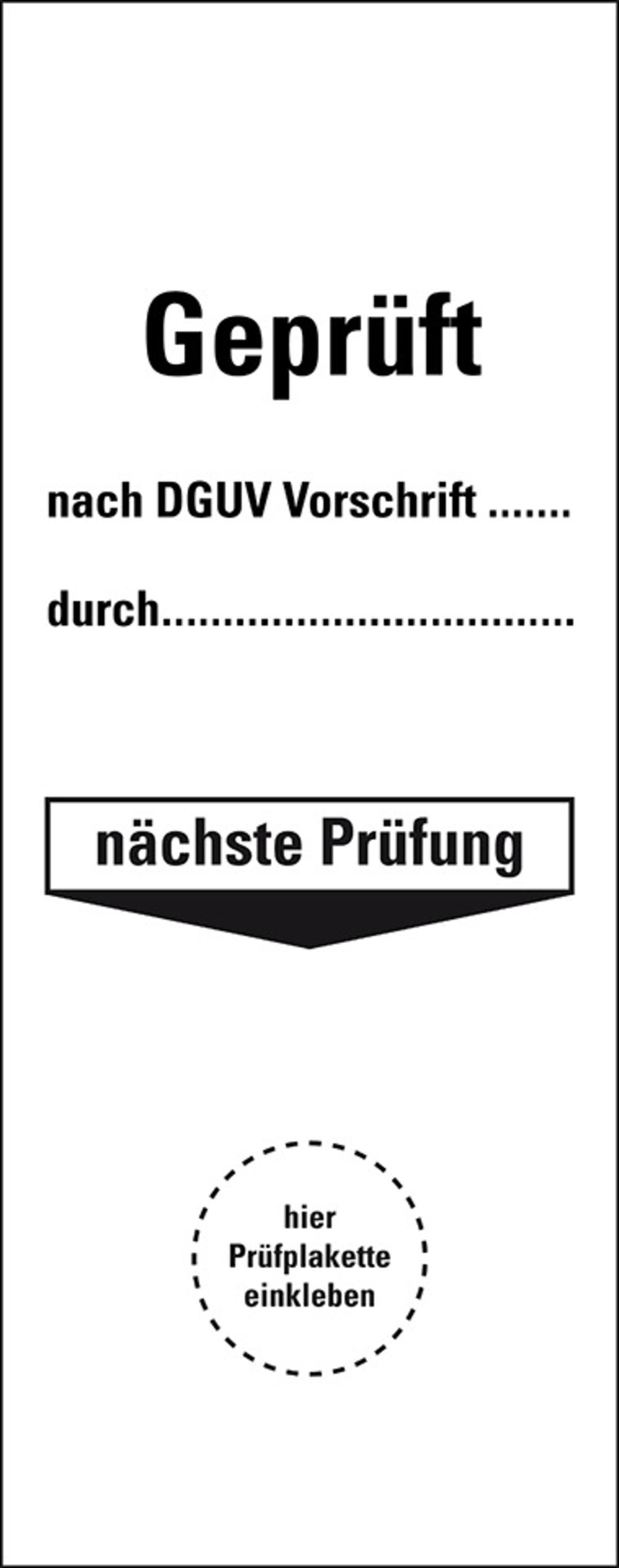 Auswahl: Grundetikett Geprüft nach DGUV Vor..durch..nä.Prüfung, Folie, 40x100mm, 5/Bogen