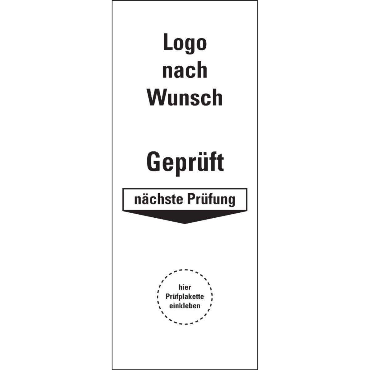 Auswahl: Grundetikett Text/Logo n.W., Geprüft nä.Prüfung, Folie, ablösbar, 40x100mm, 5/Bogen