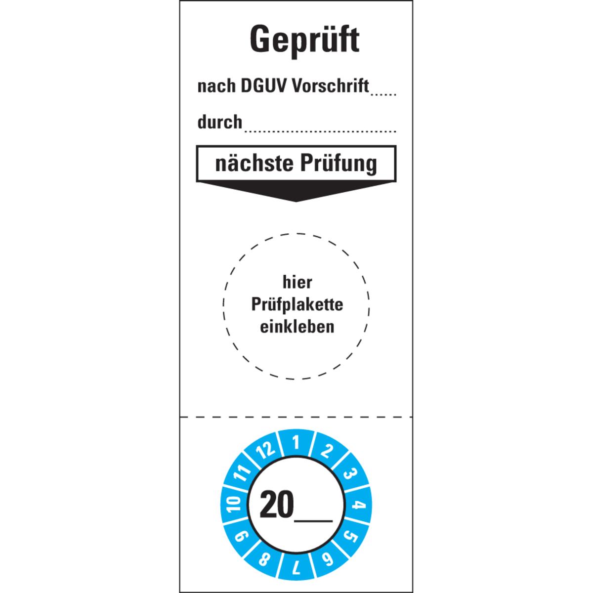 Auswahl: Grundetikett Geprüft, nach DGUV Vorschrift.., inkl. Prüfpl., 40x100mm, 5/Bogen