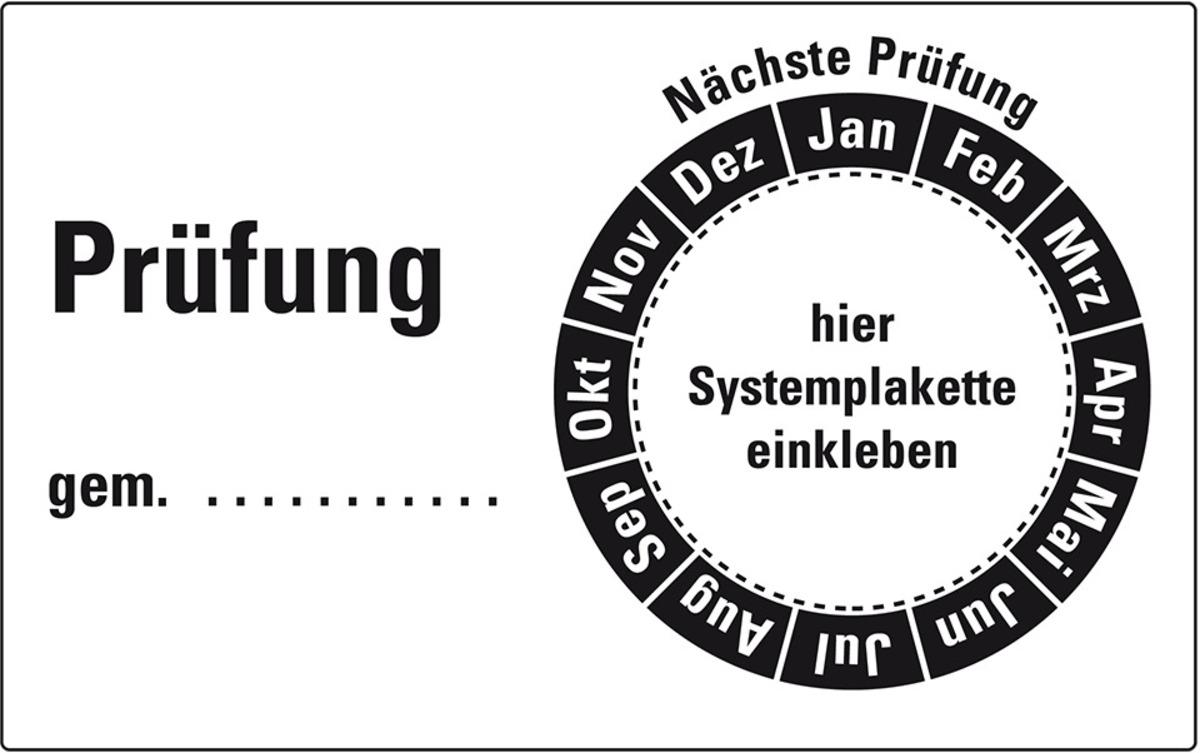 Beschriftbares Grundetikett für die Prüfung mit einjährigen Systemplaketten.