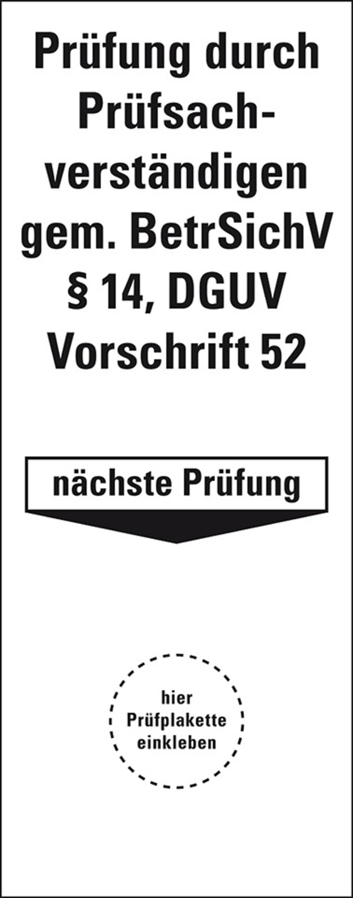 Auswahl: Grundetik.Prüfsachverst.BetrSichV §14, DGUV Vorschr.52, NP, Folie, 40x100mm, 5/Bogen