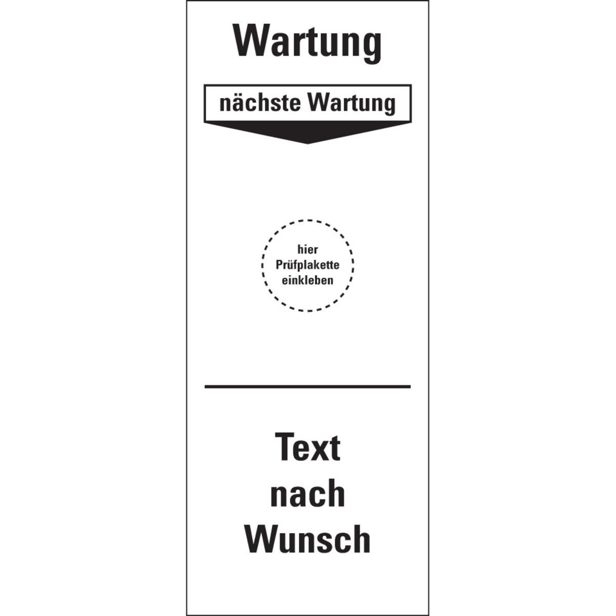 Auswahl: Grundetikett Wartung nä.Wartung, Text nach Wunsch, Folie, ablösbar, 40x100mm, 5/Bogen
