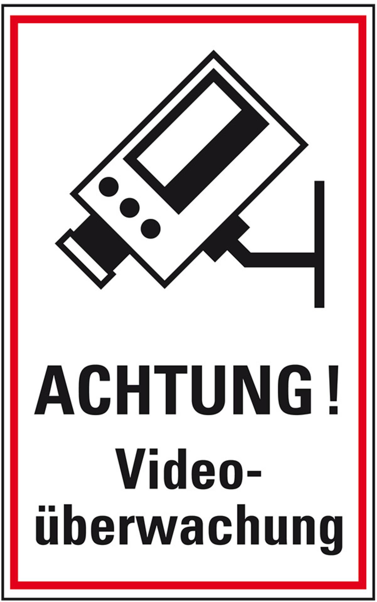 Hinweisschild, welches auf die im Kennzeichnungsbereich liegende Videoüberwachung aufmerksam macht.