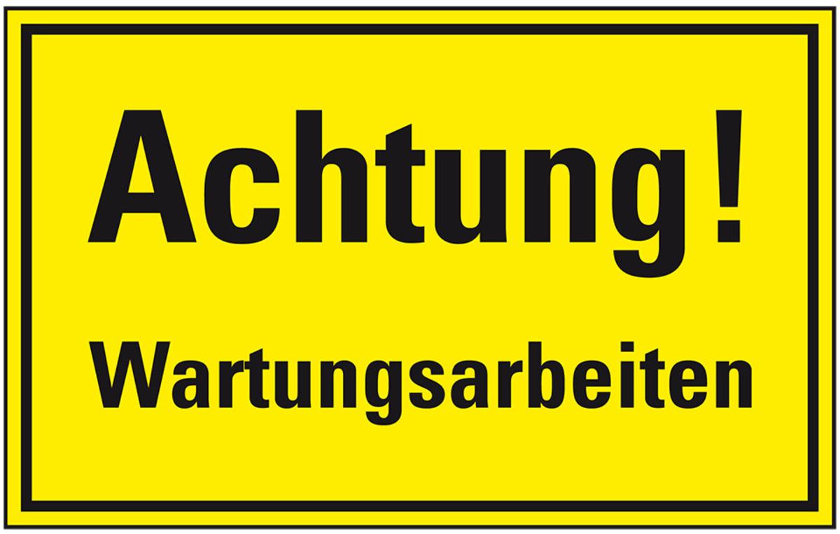 Das Hinweisschild "Achtung! Wartungsarbeiten" vermittelt dem Betrachter Informationen für mehr Sicherheit.