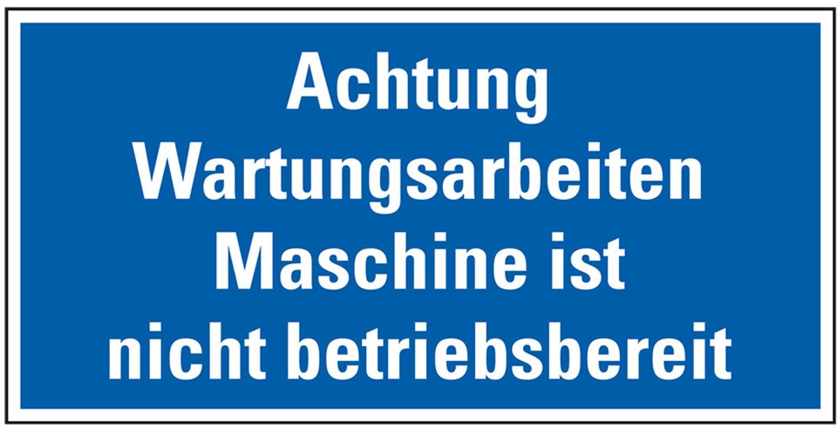 Das Hinweisschild "Achtung - Wartungsarbeiten - Maschine ist nicht betriebsbereit" vermittelt dem Betrachter Informationen für mehr Sicherheit.