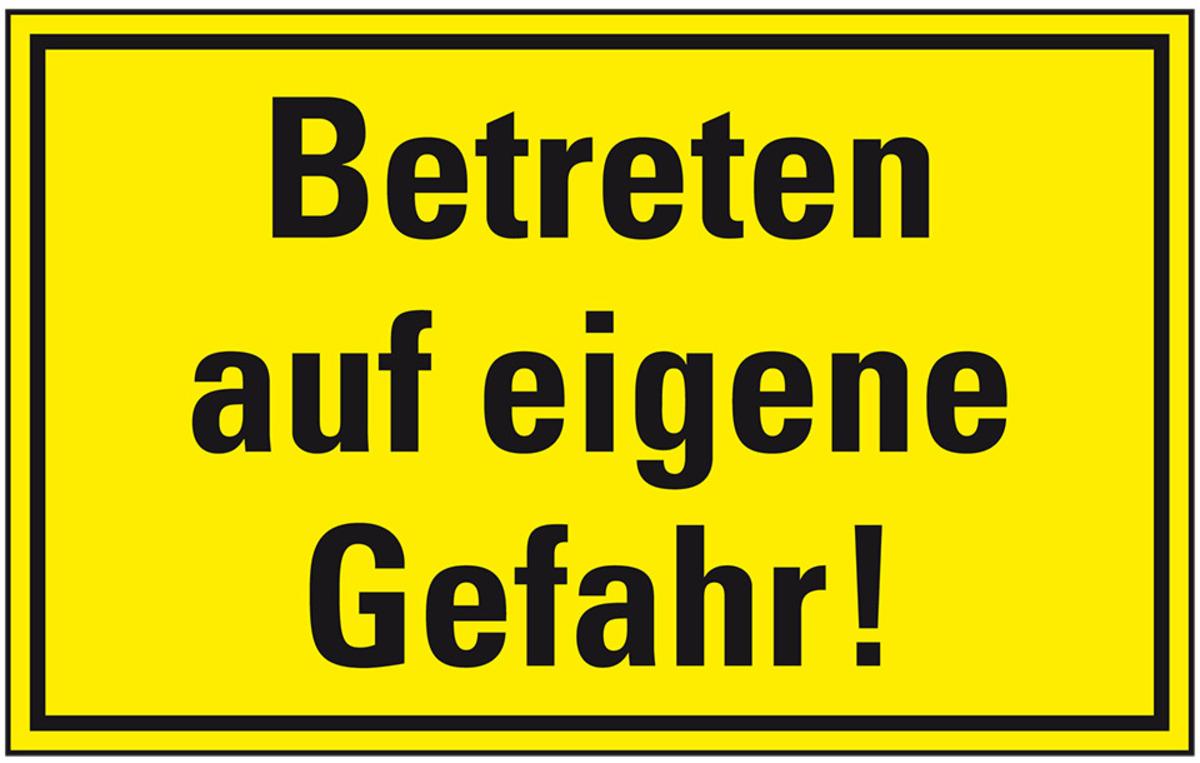 Hinweisschild "Betreten auf eigene Gefahr!" für Zufahrten und Zugänge.