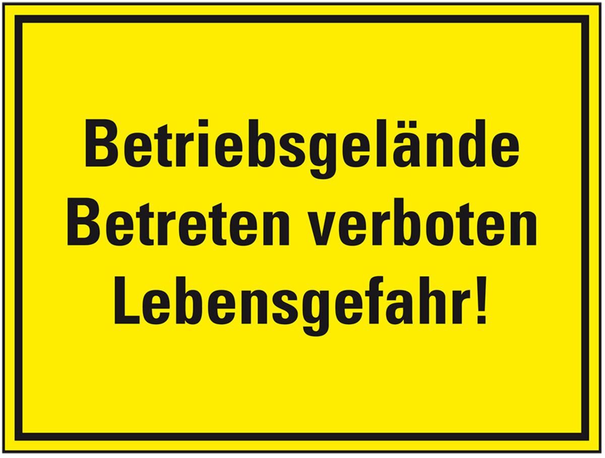 KSIGN Hinweisschild Betriebsgelände Betreten verboten Lebensgefahr Kunststoff