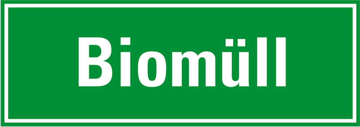 Auswahl: Hinweisschild Biomüll, grün/weiß, Folie, selbstklebend, 297x105mm