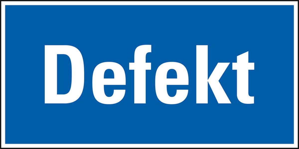 Das Hinweisschild "Defekt" vermittelt dem Betrachter Informationen für mehr Sicherheit.