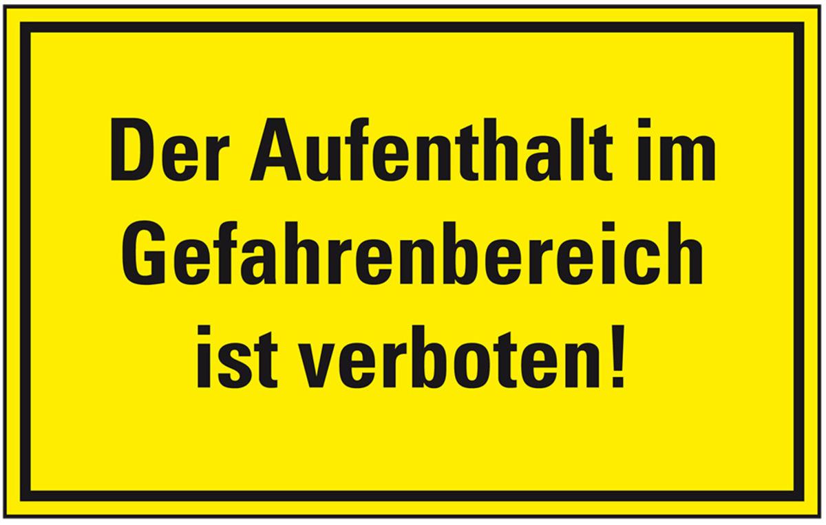 Das Hinweisschild "Der Aufenthalt im Gefahrenbereich ist verboten!" vermittelt dem Betrachter Informationen für mehr Sicherheit und einen ungestörten Betriebsablauf.
