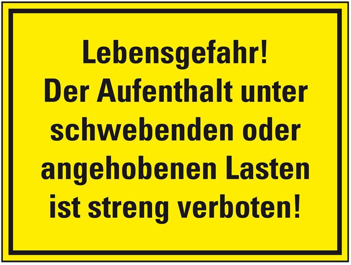 KSIGN Hinweisschild Der Aufenthalt unter schwebenden oder angehobenen Lasten verboten Kunststoff