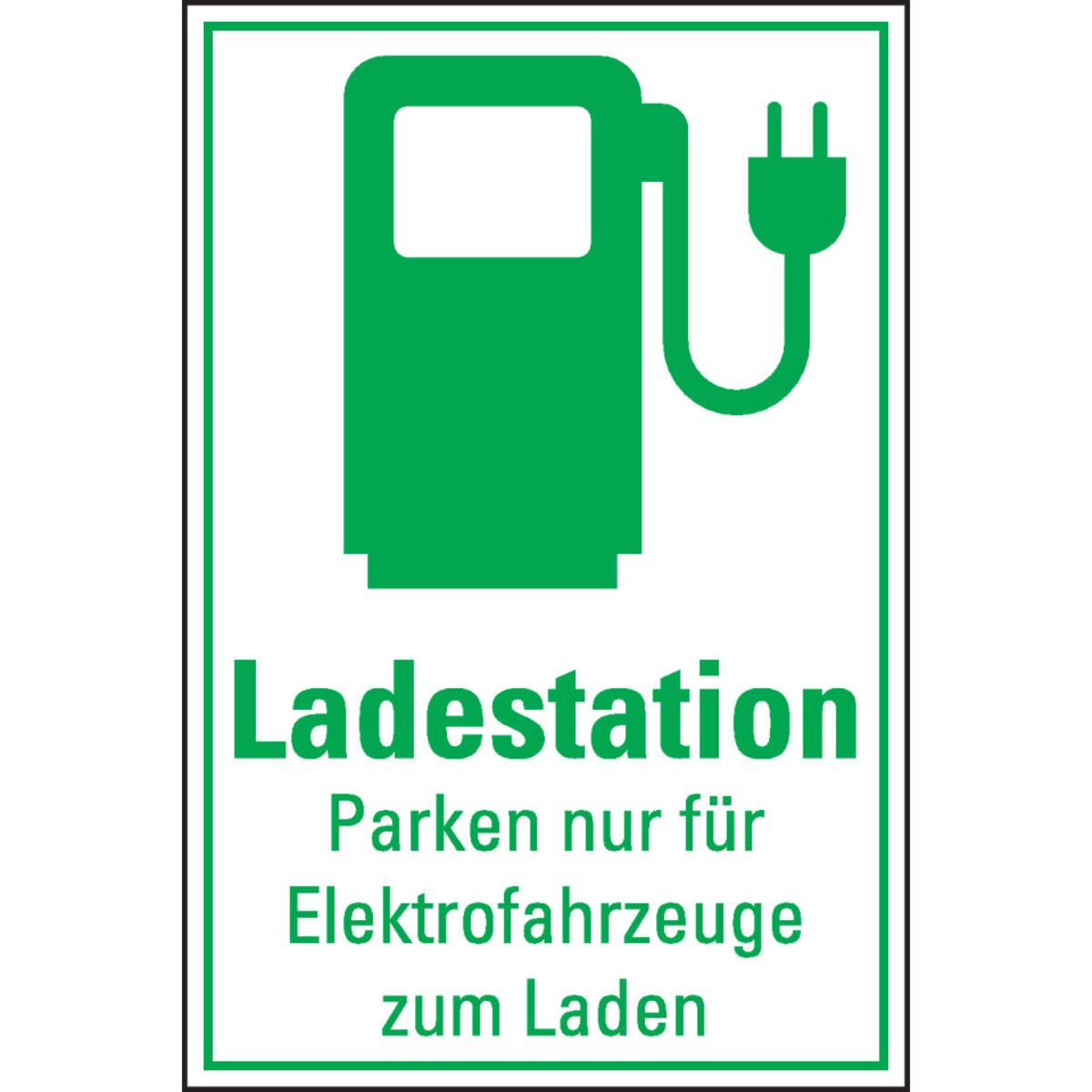 Das Hinweisschild "Ladestation - Parken nur für Elektrofahrzeuge zum Laden" ermöglicht die unmissverständliche Kennzeichnung von E-Parkplätzen für einen reibungslosen Verkehrsfluss auf dem Betriebsgelände.