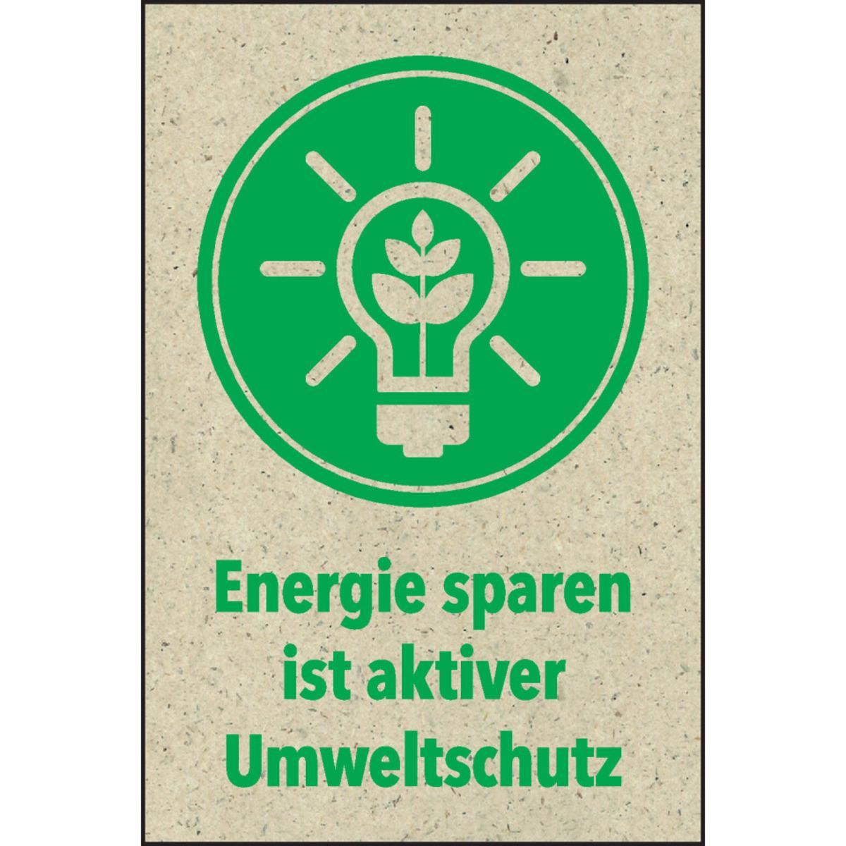 Auswahl: Hinweisschild Energie sparen ist Umweltschutz, Primärfaser-Graspapier, 200x300mm