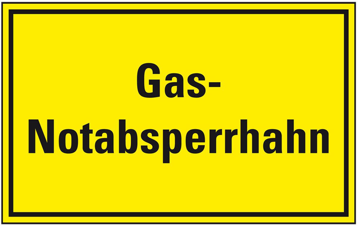 Das Hinweisschild "Gas-Notabsperrhahn" vermittelt dem Betrachter Informationen für mehr Sicherheit.