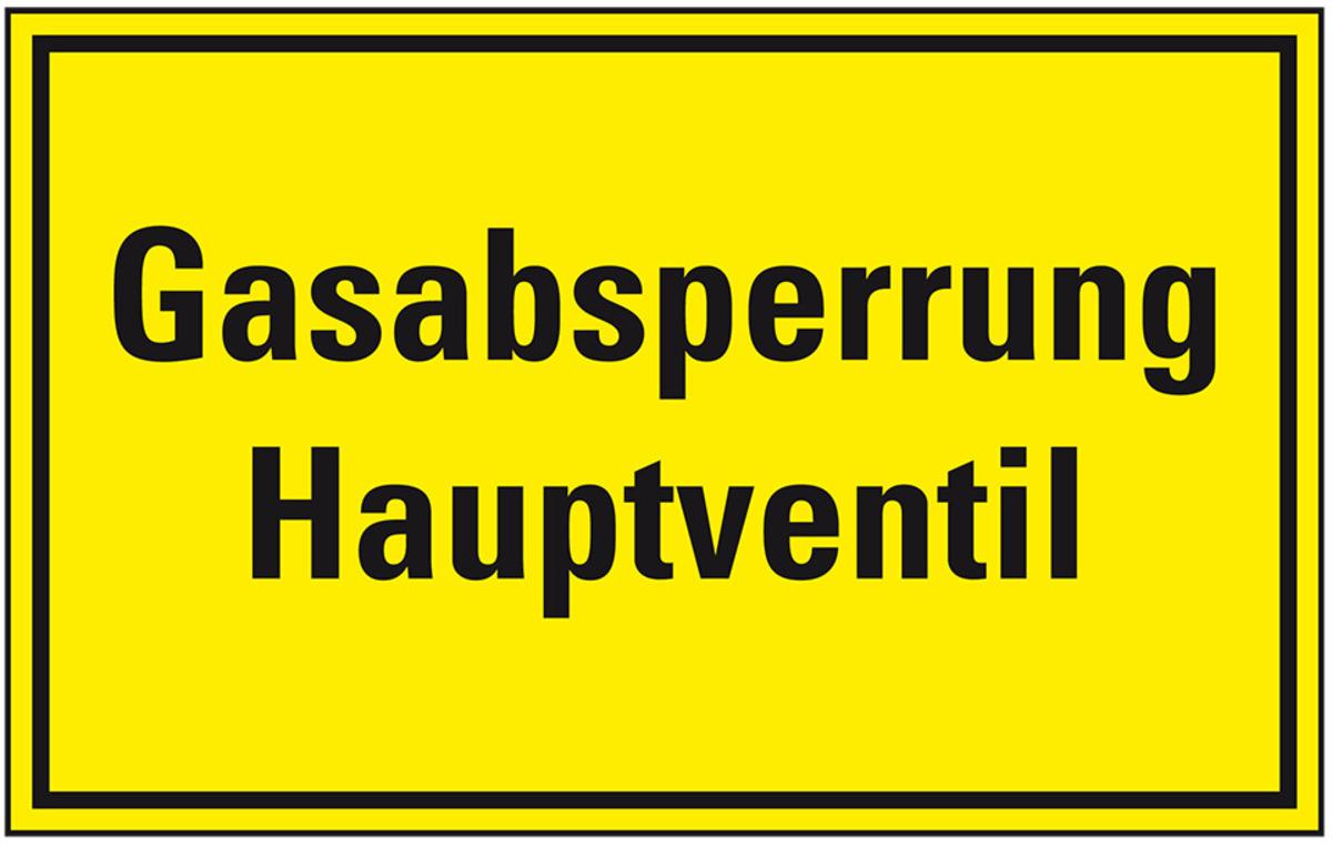 Das Hinweisschild "Gasabsperrung - Hauptventil" vermittelt dem Betrachter Informationen für mehr Sicherheit.