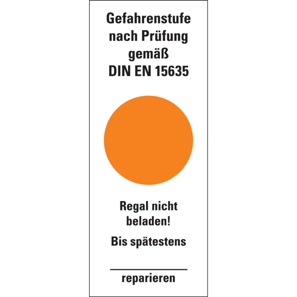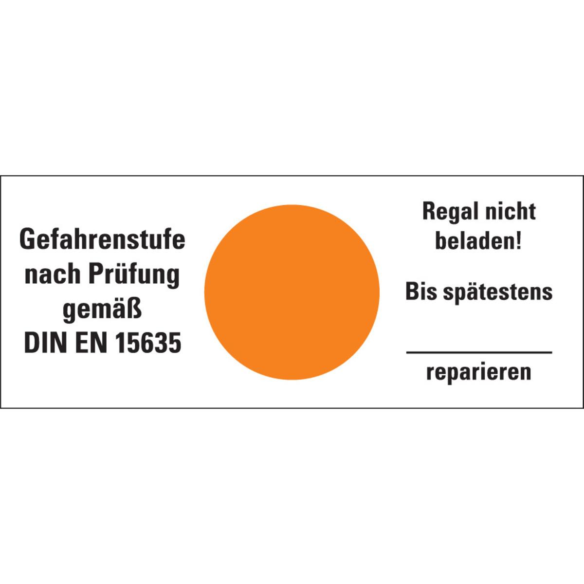 Auswahl: Hinweisetikett Gefahrenstufe orange, Regal nicht beladen!Folie, 40x100mm, 5/Bogen