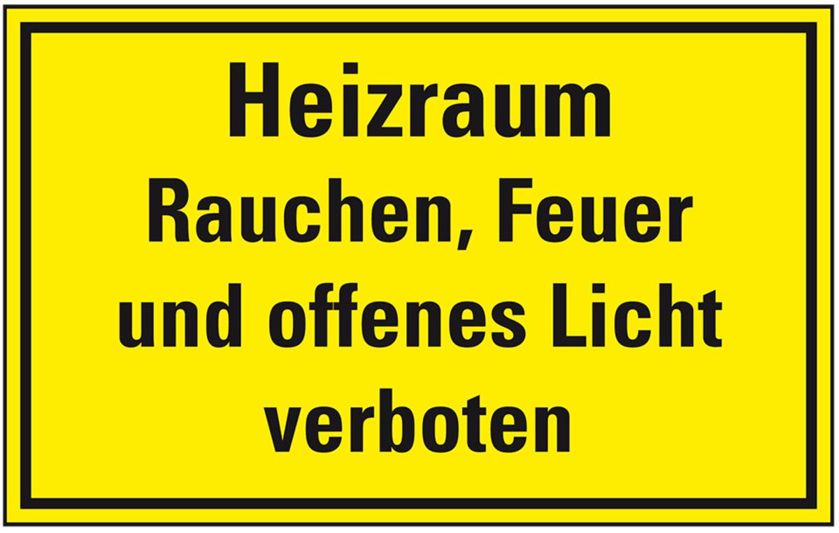 KSIGN Hinweisschild Heizraum Rauchen, offenes Feuer und offenes Licht verboten