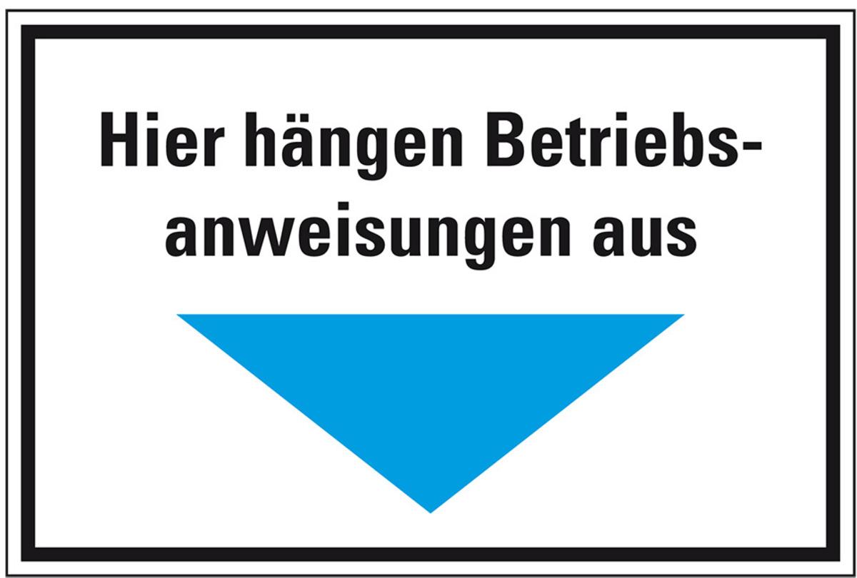 Das Hinweisschild für Betriebsanweisungen weist gut sichtbar auf den Aushang der Betriebsanweisungen hin und bietet dem Betrachter Informationen für mehr Sicherheit.