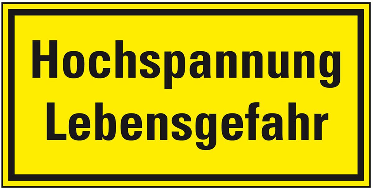 Mit dem Zusatzzeichen/Hinweisschild "Hochspannung - Lebensgefahr" vermitteln Sie zusätzliche Informationen in Textform für mehr Sicherheit auf dem Betriebsgelände.
