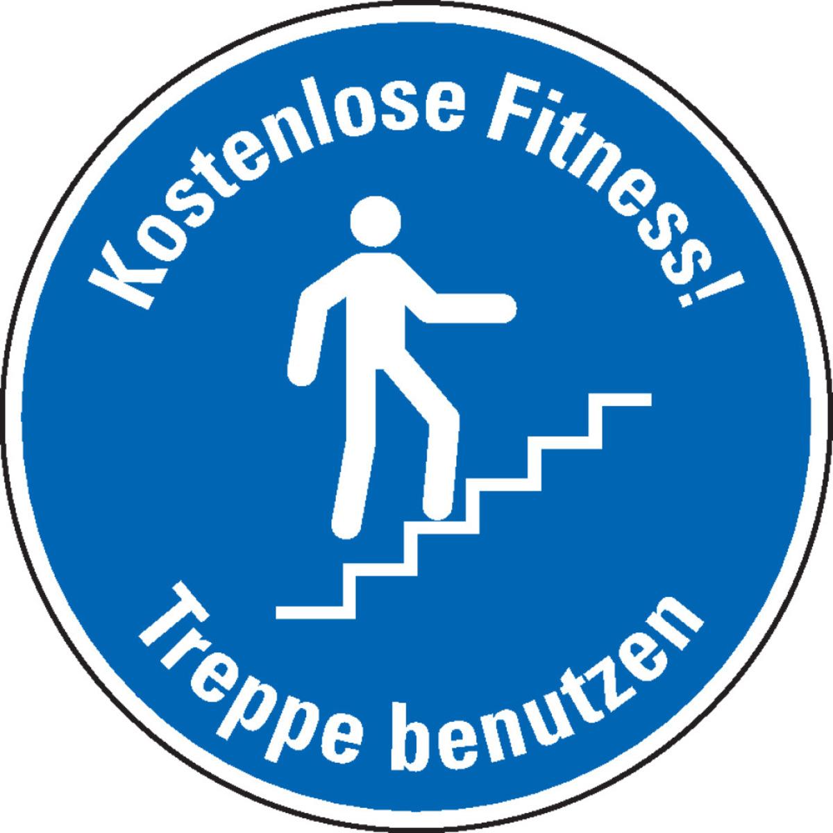 KSIGN Hinweisschild Kostenlose Fitness Treppe benutzen selbstklebende Folie Ø 100 mm
