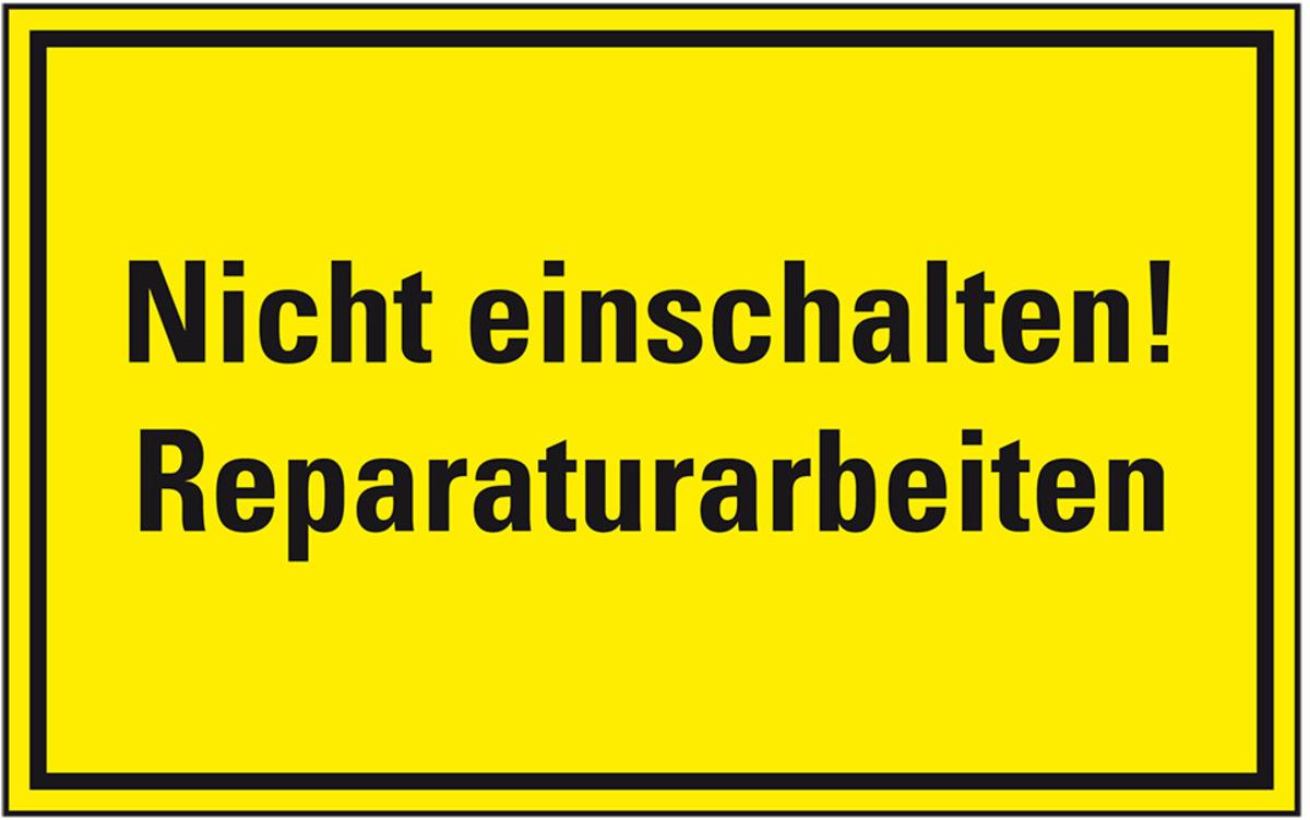 Das Hinweisschild "Nicht einschalten! - Reparaturarbeiten" vermittelt dem Betrachter Informationen für mehr Sicherheit im Betriebsablauf.