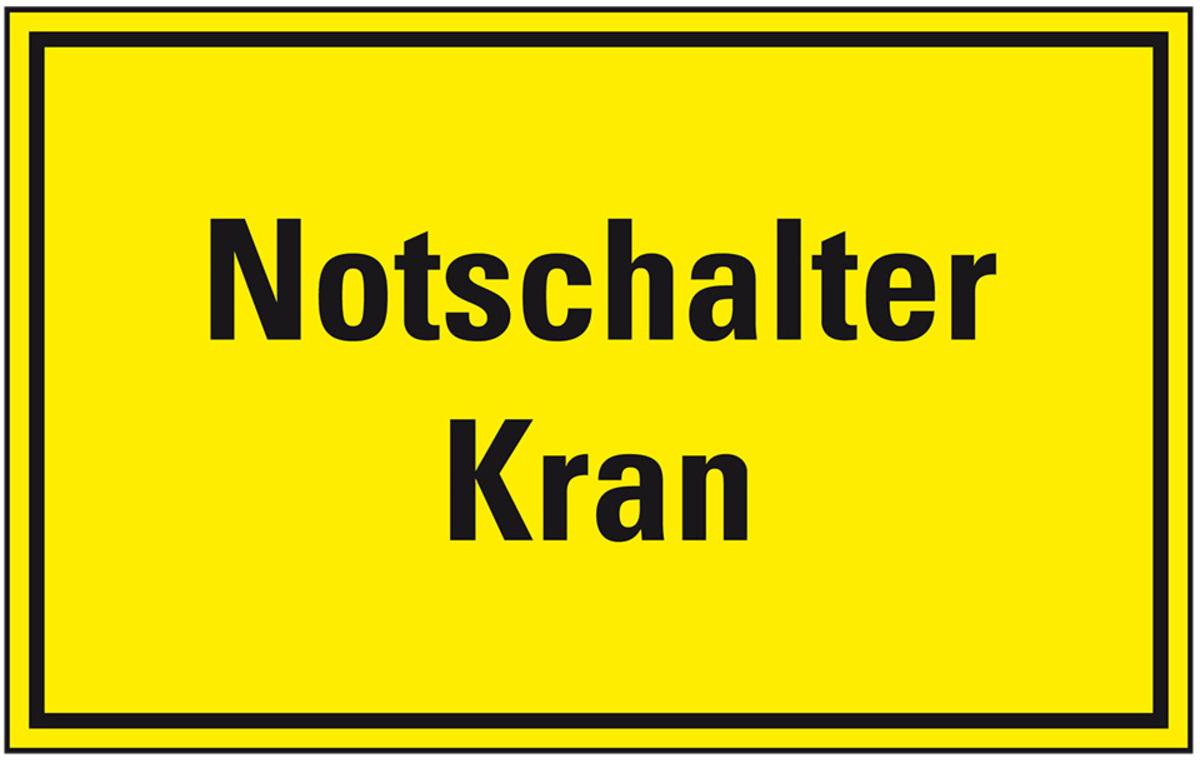 Das Hinweisschild "Notschalter Kran" vermittelt dem Betrachter Informationen für mehr Sicherheit.