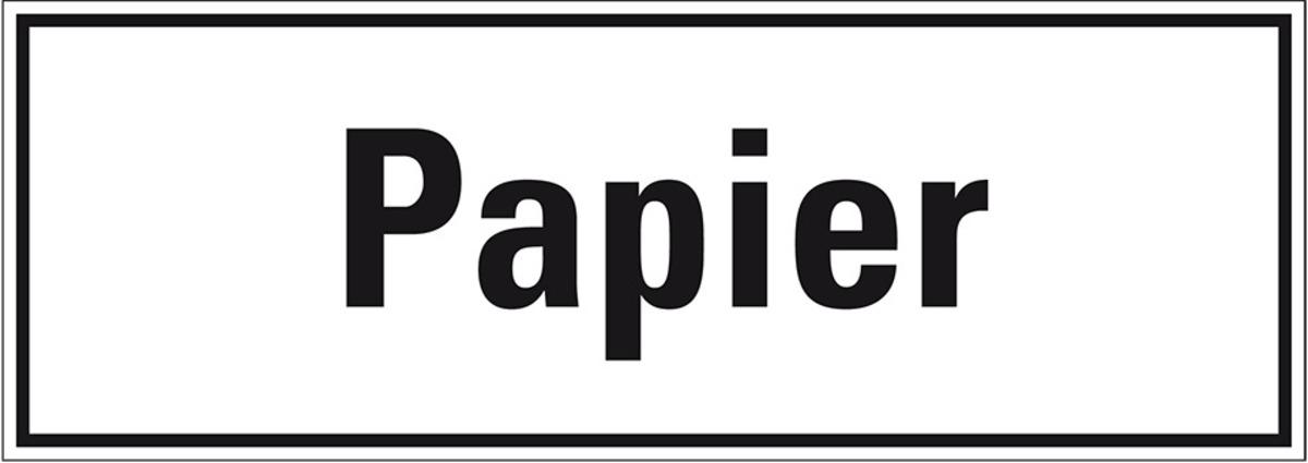 Hinweisschild "Papier" für die Entsorgungs- und Recycling-Koordination.