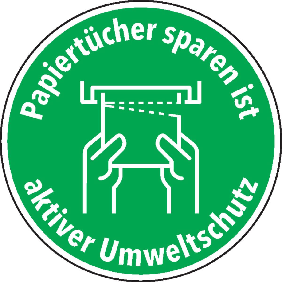 Hinweisschild Papiertücher sparen ist aktiver Umweltschutz