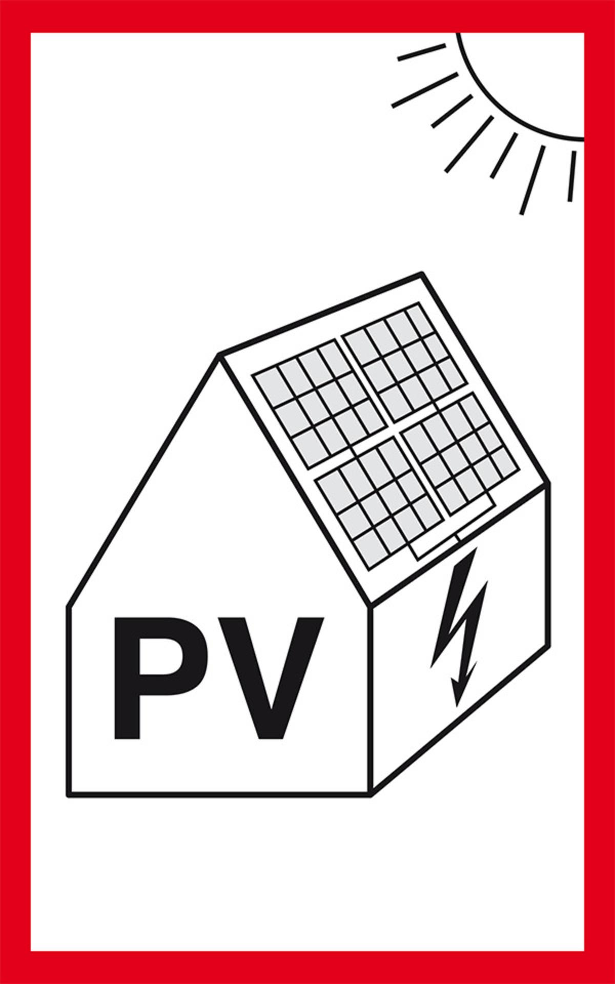 Hinweisschild Photovoltaikanlage als Information für die Feuerwehr.