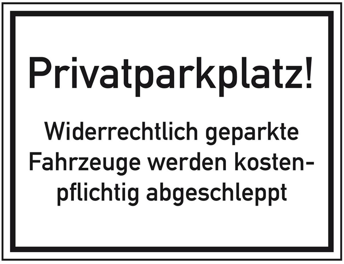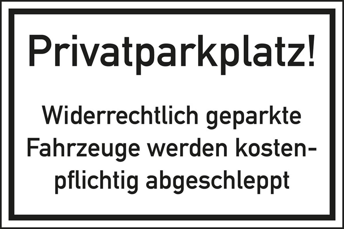 Mit dem Hinweisschild "Privatparkplatz! - Widerrechtlich geparkte Fahrzeuge werden kostenpflichtig abgeschleppt" weisen Sie Mitarbeiter, Besucher und/oder Anwohner darauf hin, dass dieser Parkplatz unter allen Umständen freizuhalten ist.