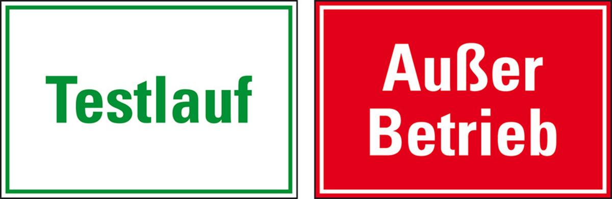 Auswahl: Doppelseitiges Magnetschild Testlauf - Außer Betrieb, Magnetfolie, 200x100mm