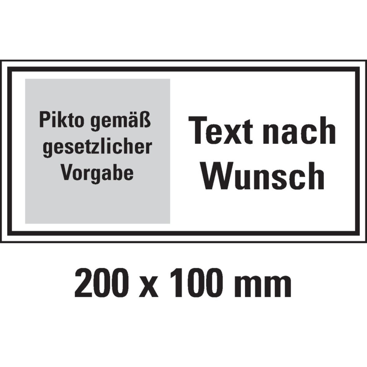 Auswahl: Hinweisschild, 1 Pikto ASR/DIN/ISO links/Text nach Wunsch. rechts, Aluminium, 200x100mm