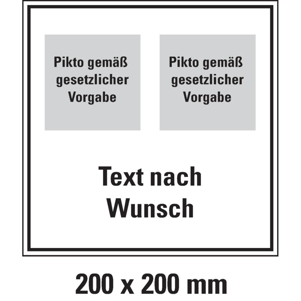 Auswahl: Hinweisschild, 2 Piktos ASR/DIN/ISO oben/1 Text nach Wunsch. unten, Kunststoff, 200x200mm