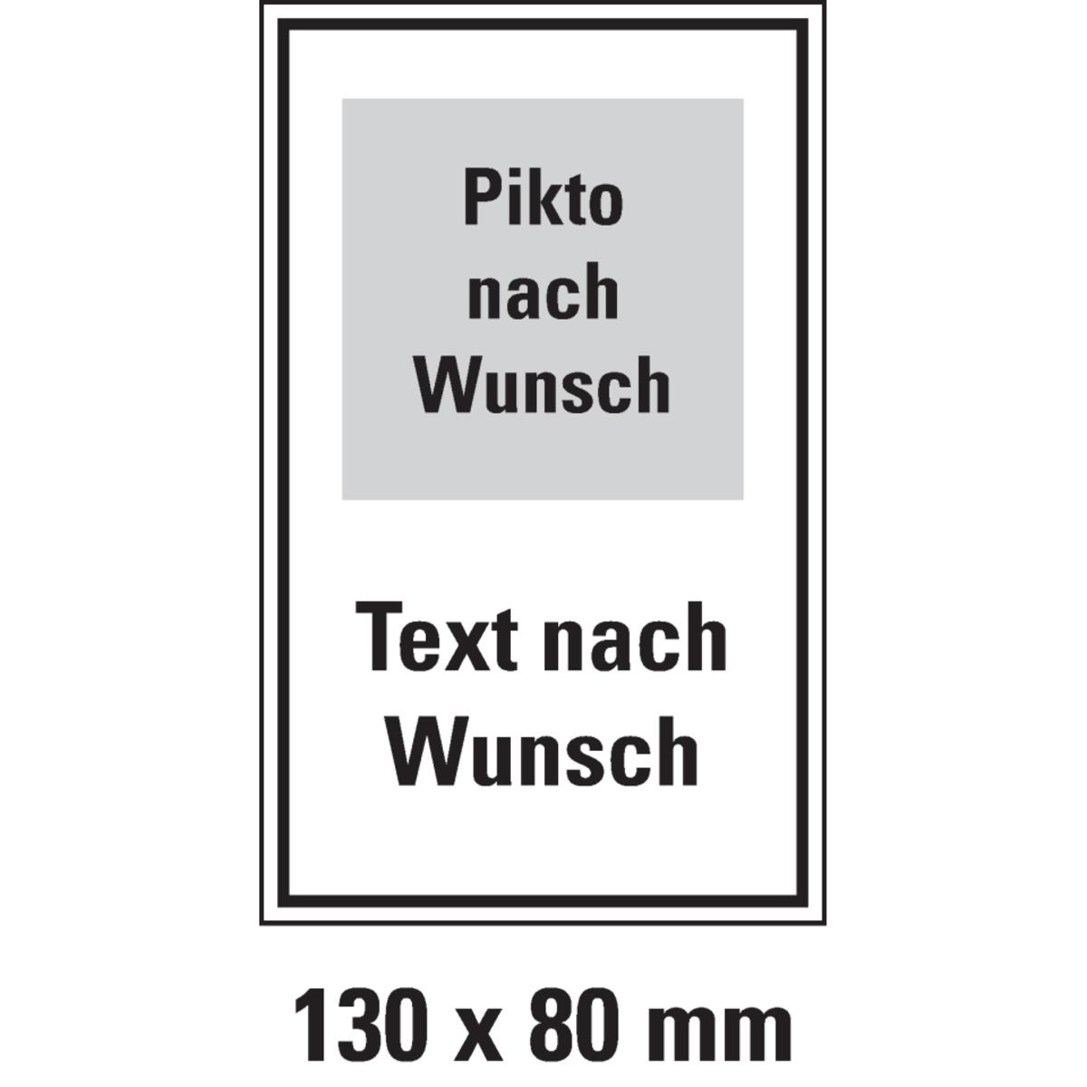 Auswahl: Hinweisschild, 1 Pikto ASR/DIN/ISO oben/Text nach Wunsch. unten, Kunststoff, 130x80mm